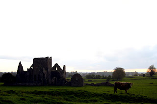 Our first stop was Cashel (pronounced like Castle... with a lisp). At Cashel we find the Rock of Cashel, a large castle on the top of... well... a rock. Also, a beautiful and amazing abbey. Our hostel was right next to both the castle and the abbey, so we made quick work of visiting these places. The abbey was my favorite. Right in the middle of a field... no admission price, just read the info sign and then slip through the gate... oh, and navigate the herd of marauding young bulls. Yeah. They were just a little too curious for my comfort. But we survived them... and it was beautiful.
